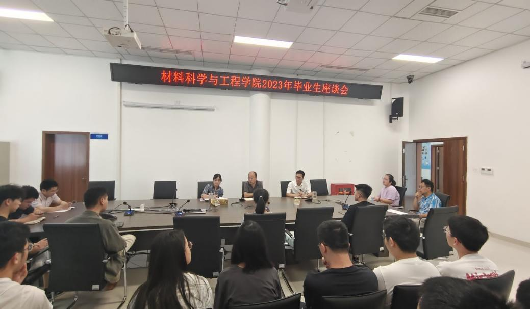 为切实增强学生与学院的沟通交流,了解毕业生实际的学习及求职情况,并为他们提供未来发展的建议和指导,6月12日下午,我院在科学城校区致远楼会议室举办2023届毕业生座谈会。学院院长王俊杰、党委副书记黄丽君、副院长郭鹏、材料科学系主任黄德明、材料物理系主任黄炎昊、教学办主任宋若愚、学工办主任胡纯、辅导员邓美林及2023届毕业生代表参与了此次座谈。