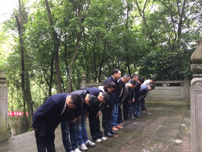 革命烈士眠铁骨,清明时节忆忠魂。4月3日上午10时,同志们首先来到为纪念解放重庆而牺牲的中国人民解放军指战员的南泉烈士陵园。烈士陵园由坊、亭、碑、墓四部分组成,庄严肃穆。同志们在革命烈士纪念碑前,同志们驻足良久,认真了解了南泉战斗的经过,追忆革命先烈的不朽功勋;其后,在烈士墓前举行了悼念仪式。