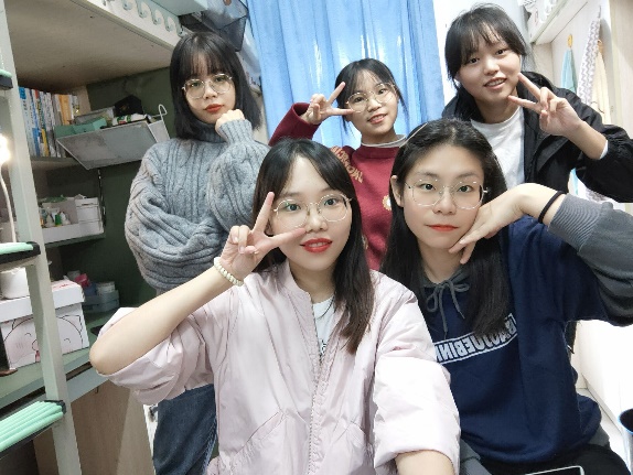 该寝室成员由2019级材料科学与工程和材料物理两个专业组成,寝室成员为肖海霞(寝室长)、左湘兰、谭彬斌、李轩、俞丽芯。她们在生活上爱干净、讲文明。寝室成员每天轮流值日,打扫卫生,用整洁的生活环境营造舒心的学习氛围。该寝室在上学年多次荣获“四星文明寝室”称号。她们具有爱国、励志、求真、力行的优良品质。平时,她们不仅注重专业基础知识的学习,而且注重实践能力的提升,坚持夯实根基、练就本领。寝室成员全员通过英语四级,一人通过普通话等级考试。上一学年,寝室成员分别获得重庆交通大学优秀学生奖学金、重庆交通大学三好学生、重庆交通大学优秀共青团员、重庆交通大学校团委优秀干事、互联网+大学生创新创业大赛重庆市银奖等奖项。