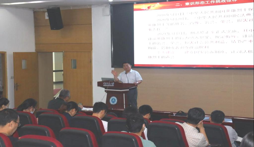 刘洪彪教授以“坚定不移做好新时代意识形态工作”为主题,从意识形态工作的极端重要性、意识形态工作的挑战依存、切实做好意识形态工作等三个方面向参会者做了全面阐释。刘洪彪教授强调意识形态工作极端重要,事关党的前途命运,事关国家长治久安,事关民族凝聚力和向心力,必须深刻认识意识形态工作面临的现实风险和挑战,提高防范化解风险的前瞻性和主动性,必须巩固马克思主义在意识形态工作主导地位,践行社会主义核心价值观,牢牢掌握网络意识形态工作领导权,不断建设一支过硬的意识形态工作队伍,提高工作者的整体能力水平。刘洪彪教授要求师生党员,努力做到学以致用,用以促学,坚持社会主义办学方向,敢于斗争,以实际行动维护校园安全和稳定。