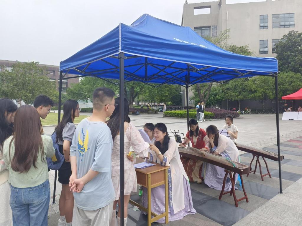 古筝社的朋友特地穿上了古风服饰加持此次活动,一袭汉服,一架古筝,只为传播传统文化,伴着悠扬的古典音乐,大家都乐在其中,享受着传统民乐和传统游戏带来的美妙体验。