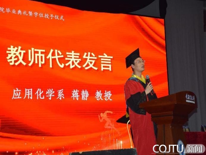 教师代表蒋静在发言中表示,在这个挑战与机遇并存的新时代,未来的路上,同学们要学以报国,不负守望,勇敢逐梦,心中有责,不忘初心,砥砺交大精神,在新征程上作出新贡献,大步迈向更广阔的世界。