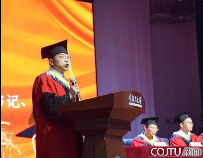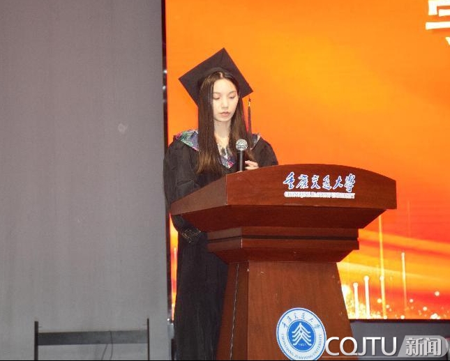 本科毕业生代表冉诗宇在发言中带领同学们回顾了在交大的四年时光,她衷心感谢母校,感谢学院,感谢老师,感谢朋友,感谢自己,她感叹时间飞逝,告诫同学们要珍惜时间,不负自己,同时祝贺毕业生在青春的节奏中迎来自己崭新的未来。