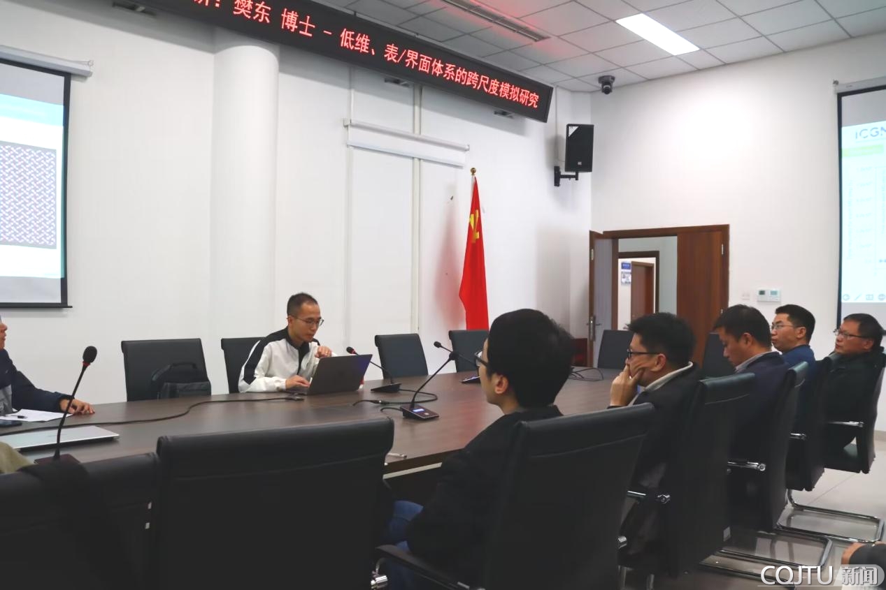 11月23日材料·青春之约系列讲座第二十一讲在科学城校区我院会议室举行,邀请法国国家研究院樊东博士作题为低维、表/界面体系的跨尺度模拟研究的讲座报告。本次讲座由我院青年专家委员会主办,低碳交通功能材料重庆市工程实验室、重庆交通大学中国西班牙高等材料联合研究中心承办。我院副院长李力、科系室主任、骨干教师和学院研究生出席了会议。