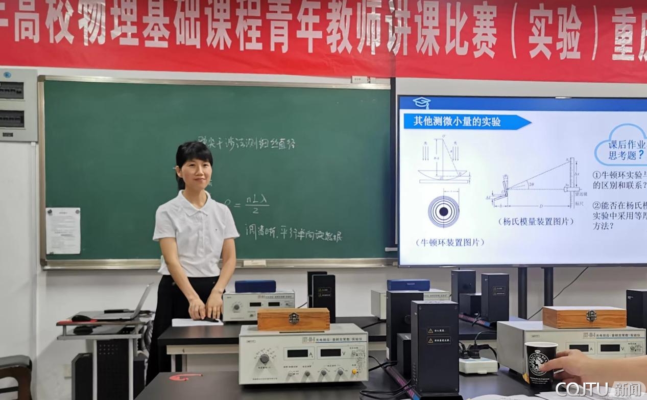 5月26日,来自重庆高校21位优秀物理基础实验课程教师,参加了高校物理基础课程青年教师讲课比赛(实验)重庆赛区赛,他们展示了高水平的教学技能和深厚的专业知识。经过一系列的比赛环节,我校我院材料物理系的江娜老师凭借卓越的教学技能和专业素养,在众多参赛选手中脱颖而出,荣获重庆赛区一等奖的殊荣,此举创下了我校在该项赛事中的最好成绩纪录。同时,江娜老师以第一名的成绩获得了重庆市物理学会的认可,被推荐代表重庆赛区参加西南地区复赛的资格。