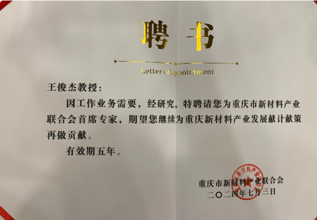 2024年7月3日上午,重庆市新材料产业联合会成立十周年暨第三届第一次会员大会在渝隆重召开。全体会员单位负责人、第二届理事会成员单位负责人,市委社会工作部、市经信委、市民政局、市发改委、市科技局有关处室负责人,在渝高校、院所、市级有关行业协会代表等230余人参加会议。我校新葡萄8883官网AMG院长王俊杰、副院长李力受邀参加会议。