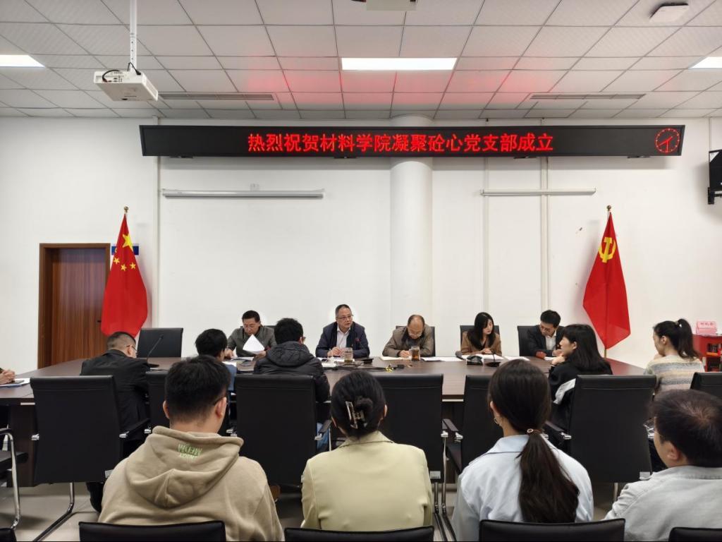 把党支部建在科研团队上,我院基于研究生成长特点,结合学科方向和研究生导师科研团队情况,积极探索支部混编模式,进一步加强科研机构建设,拓展育人平台,于2024年11月8日,在我院会议室召开了“凝聚砼心”师生混合型党支部成立大会。学院党委书记周平,副书记、院长王俊杰,正处级组织员、纪委书记胡标辉,党委副书记黄丽君,副院长郭鹏,低碳凝胶材料研究所全体成员以及固定成员所指导的研究生等出席了此次大会。本次大会由正处级组织员胡标辉主持。