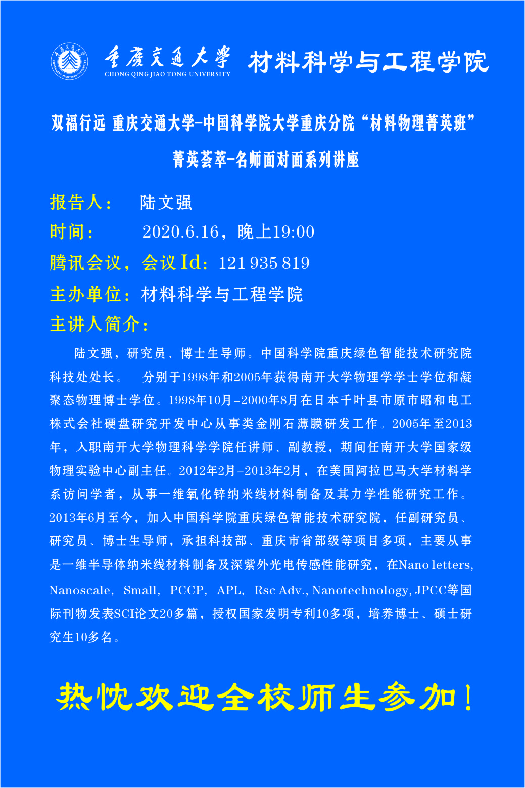双福行远之重庆交通大学中国科学院大学重庆分院“材料物理菁英班”菁英荟萃-名师面对面系列讲座