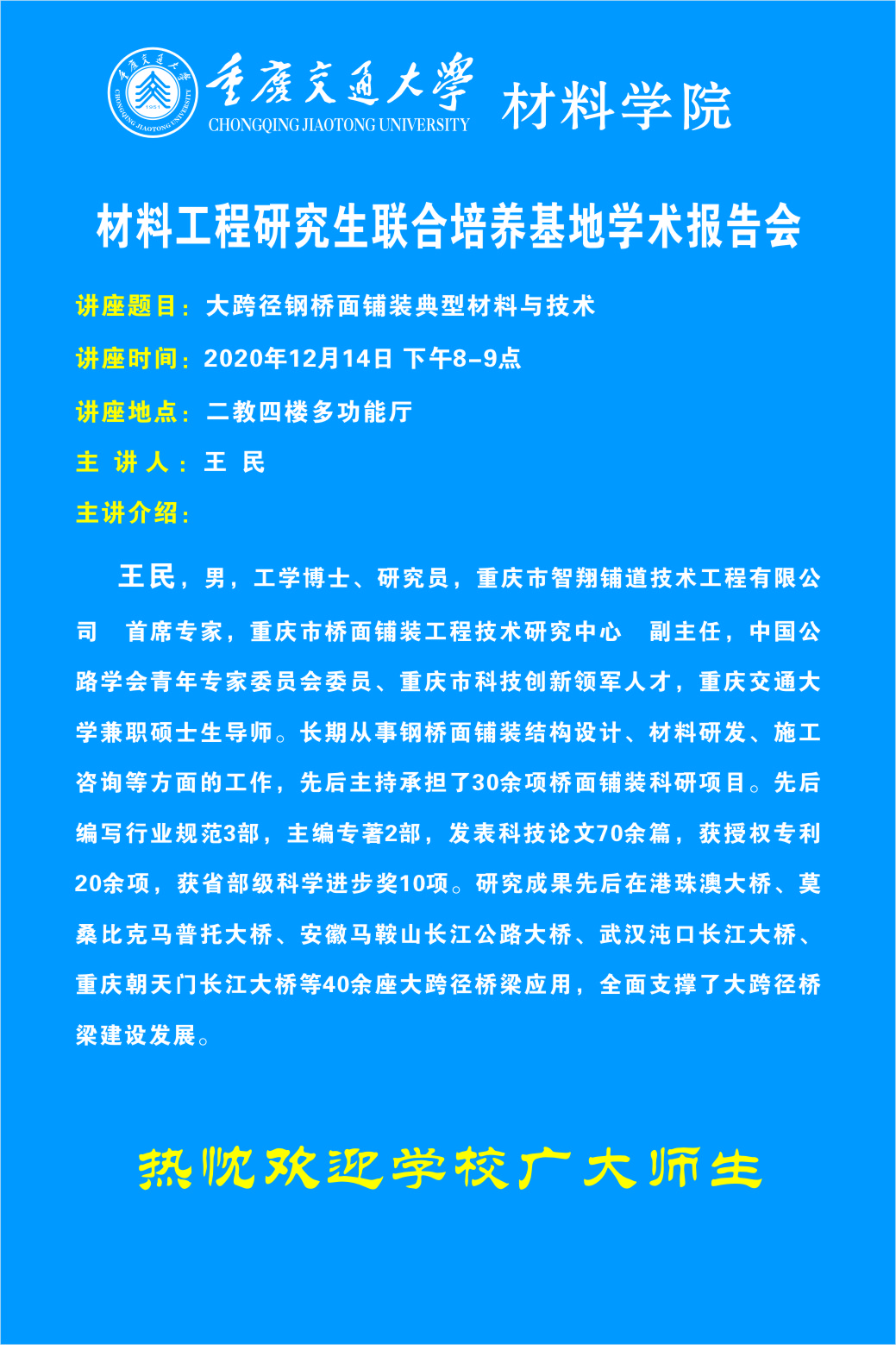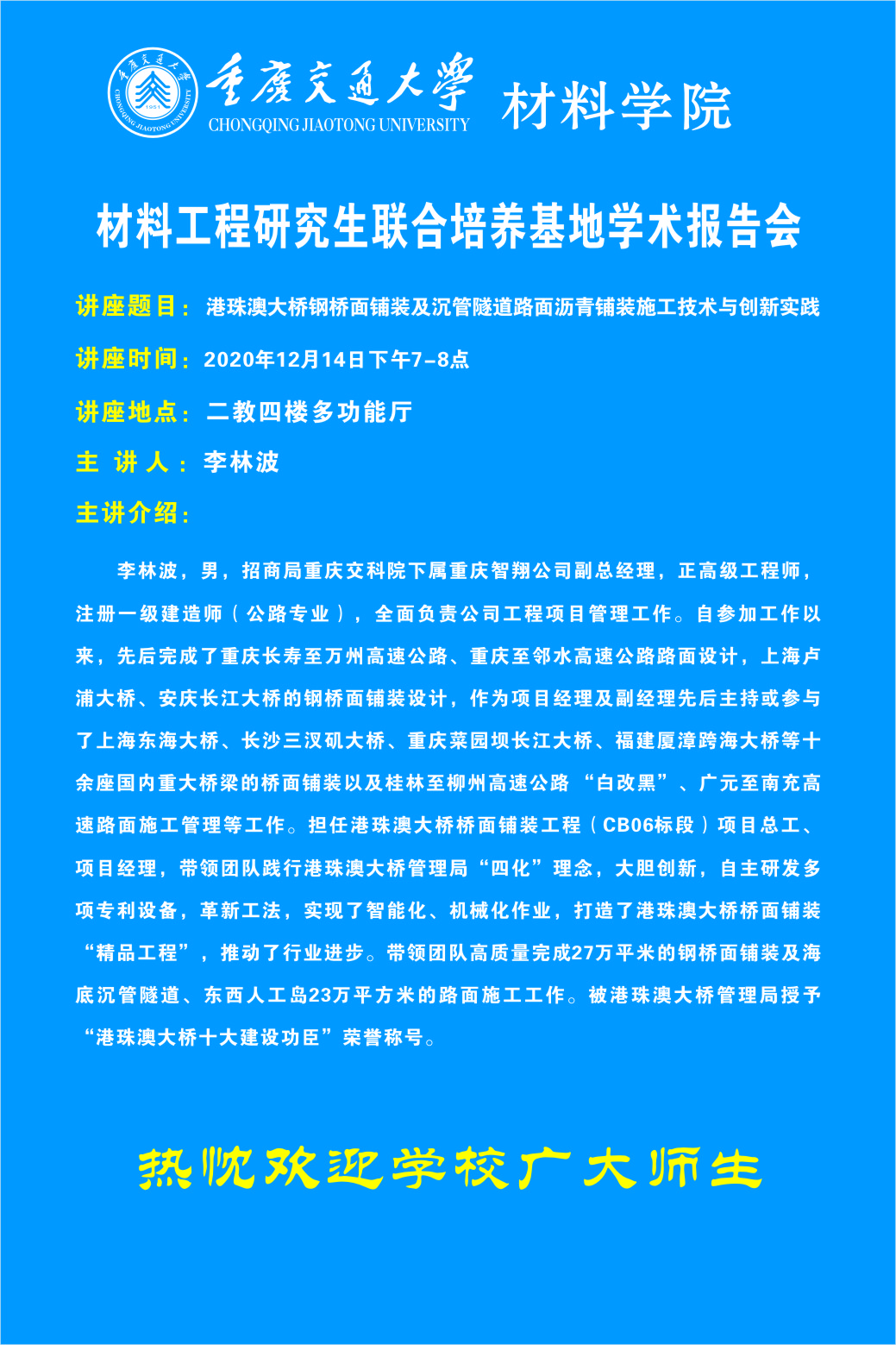 重庆交通大学-重庆市智翔铺道技术工程有限公司材料工程研究生联合培养基地学术报告会
