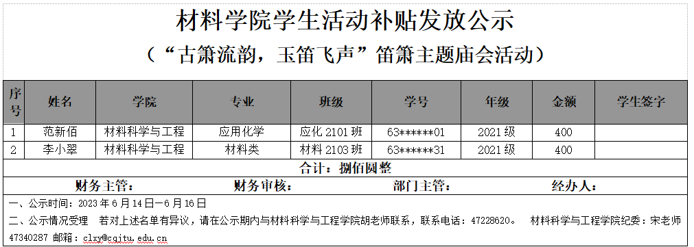 我院学生活动补贴发放公示(“古箫流韵,玉笛飞声”笛箫主题庙会活动)