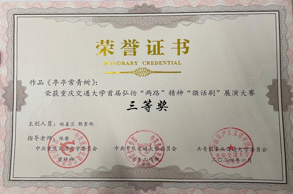 本次“微话剧”展演大赛的圆满完成,不仅为全校师生提供了一个展示才华、交流学习的平台,也进一步推动了“两路”精神的传承与弘扬,为构建和谐社会、实现中华民族伟大复兴的中国梦注入了新的动力。