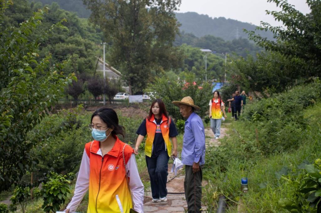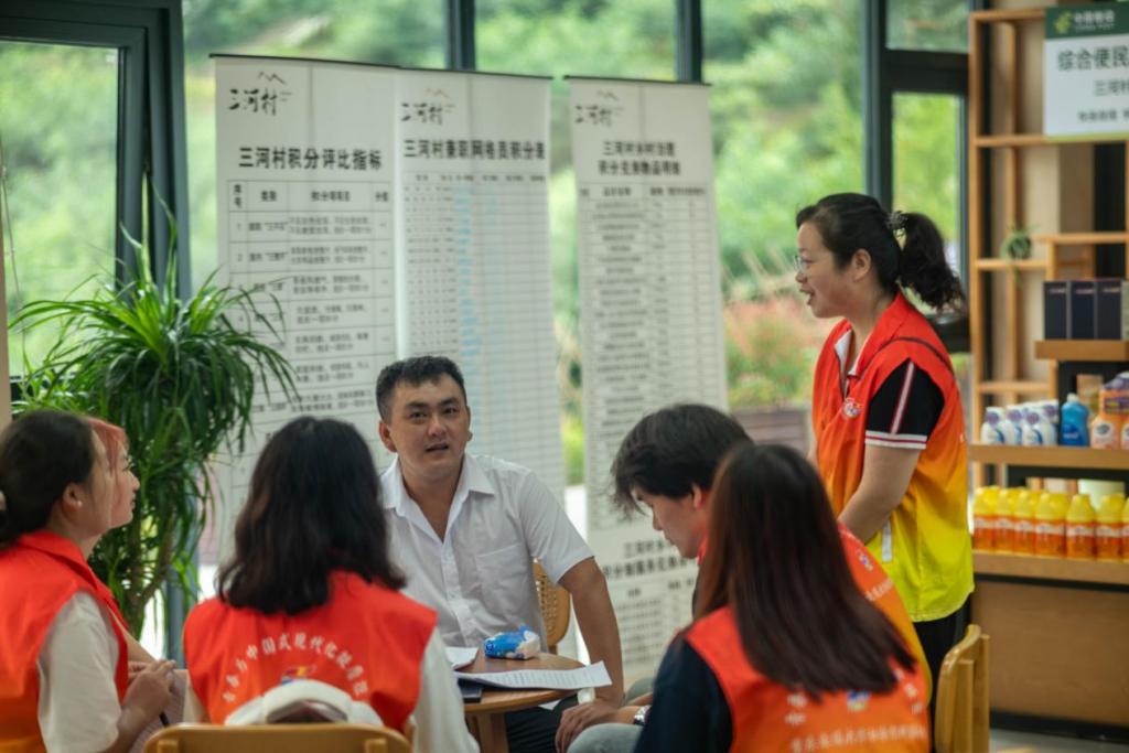 图 1为实践团成员与三河村工作人员交谈