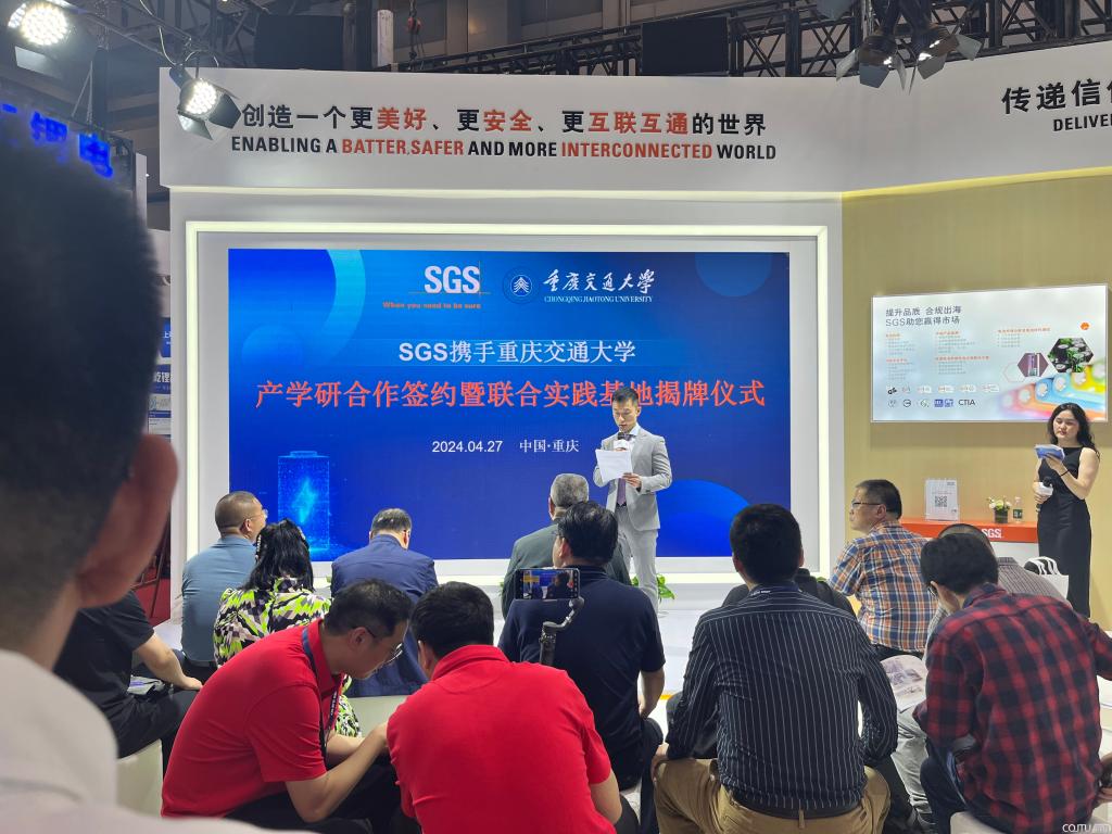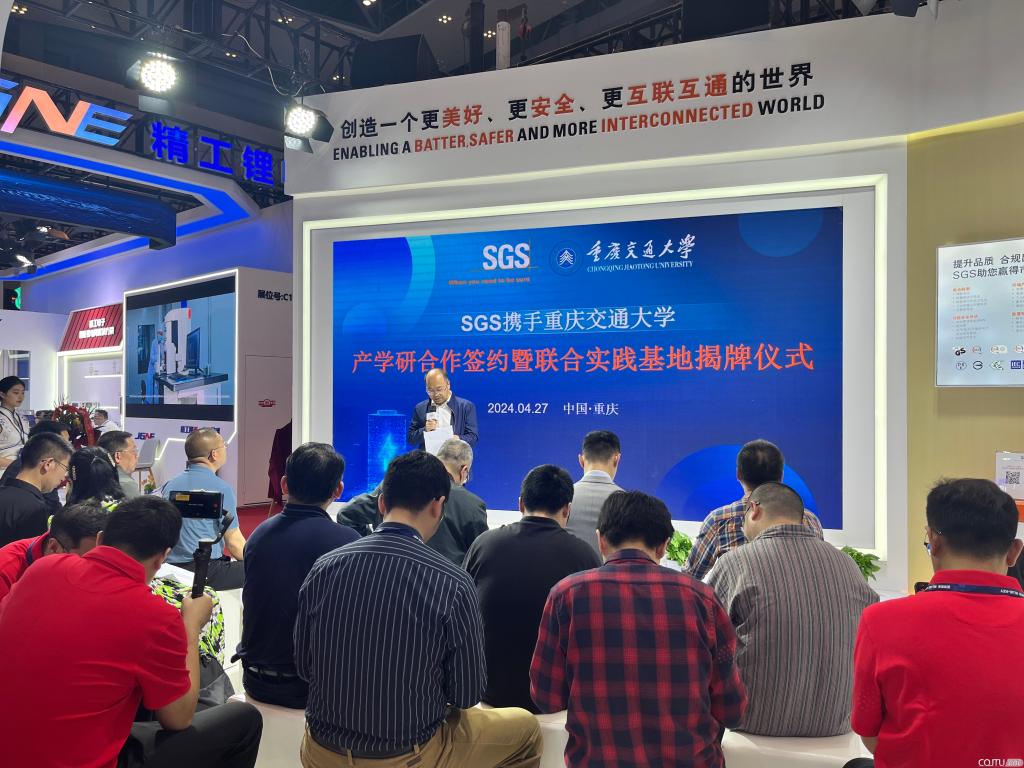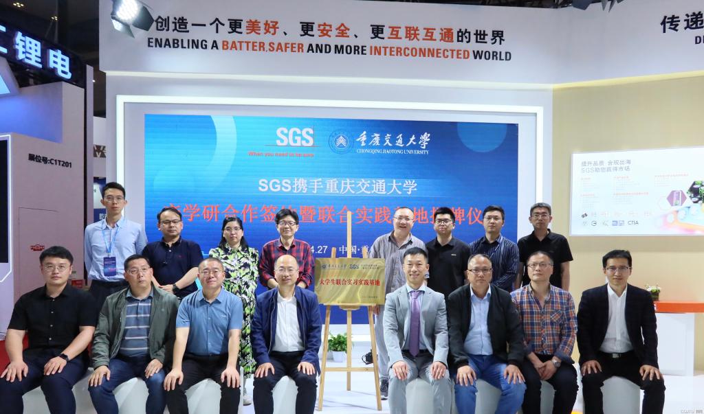 为积极响应重庆市“33618产业布局”规划,推动学院新能源材料与器件新工科专业建设进程,进一步提升学院产学研育人质量,2024年4月27日,新葡萄8883官网AMG党委书记周平、院长王俊杰、纪委书记胡标辉、副院长李力、郭鹏等一行,前往在重庆国际博览会举办的中国国际电池与储能技术展览会(CIBF 2024),与国际公认的测试、检验和认证机构——标瑞新能源技术(重庆)有限公司(SGS-CEC)举办产学研合作签约暨联合实践基地揭牌仪式,出席仪式的还有SGS互联与产品事业群电子电气事业部华南区总监郑凯先生、SGS中国新能源高级经理王彦兵先生等代表。