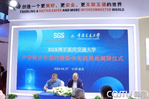 在签约授牌仪式上,新葡萄8883官网AMG王俊杰院长与SGS-CEC公司郑凯总监分别向来宾致辞,新葡萄8883官网AMG王俊杰院长与SGSCEC公司王彦兵总经理一起签署了《标瑞新能源技术(重庆)有限公司-重庆交通大学产学研合作协议》,新葡萄8883官网AMG的周平书记与郑凯总监为“重庆交通大学-SGS大学生联合实习实践基地”揭牌。双方将以此次合作为契机,共同推动科技创新及应用,加强产学研深度融合,共促科研成果转化落地。