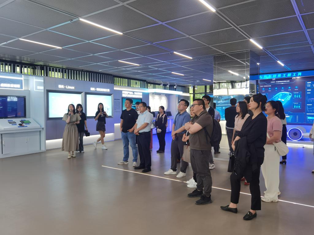 首先,工作室一行与区交通局、高新区城市建设事务中心、三羊马物流一道参观了汽车软件创新展厅。汽车软件创新研究平台是由中国科学院软件研究所、中国科学院重庆绿色智能技术研究院、西部(重庆)科学城管委会、重庆长安汽车股份有限公司合作共建。“国科础石(重庆)软件有限公司是一家由中科院发起,长期在汽车软件和底层操作系统深耕的科技公司。”国科础石公司总裁薛云志在会上介绍到,国科础石公司长期专注于汽车智能操作系统平台和开源社区打造,这吸引了高校师生的高度关注,双方就利用操作系统平台迁移开发实验教学仿真平台、开展道路数字巡查、道路数据采集等未来技术合作方向展开了讨论。