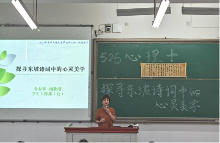 为迎接第22届“5.25”心理健康节,加强大学生文化美育教育,25日晚19:00新葡萄8883官网AMG在重庆交通大学科学城校区进行了一场别开生面的讲座,来自学生工作部的金春寒副教授带领我院学子们走进了诗词画意的情境中,和着在场的檀香与茶香,一起探寻东坡诗词中的心灵美学。
