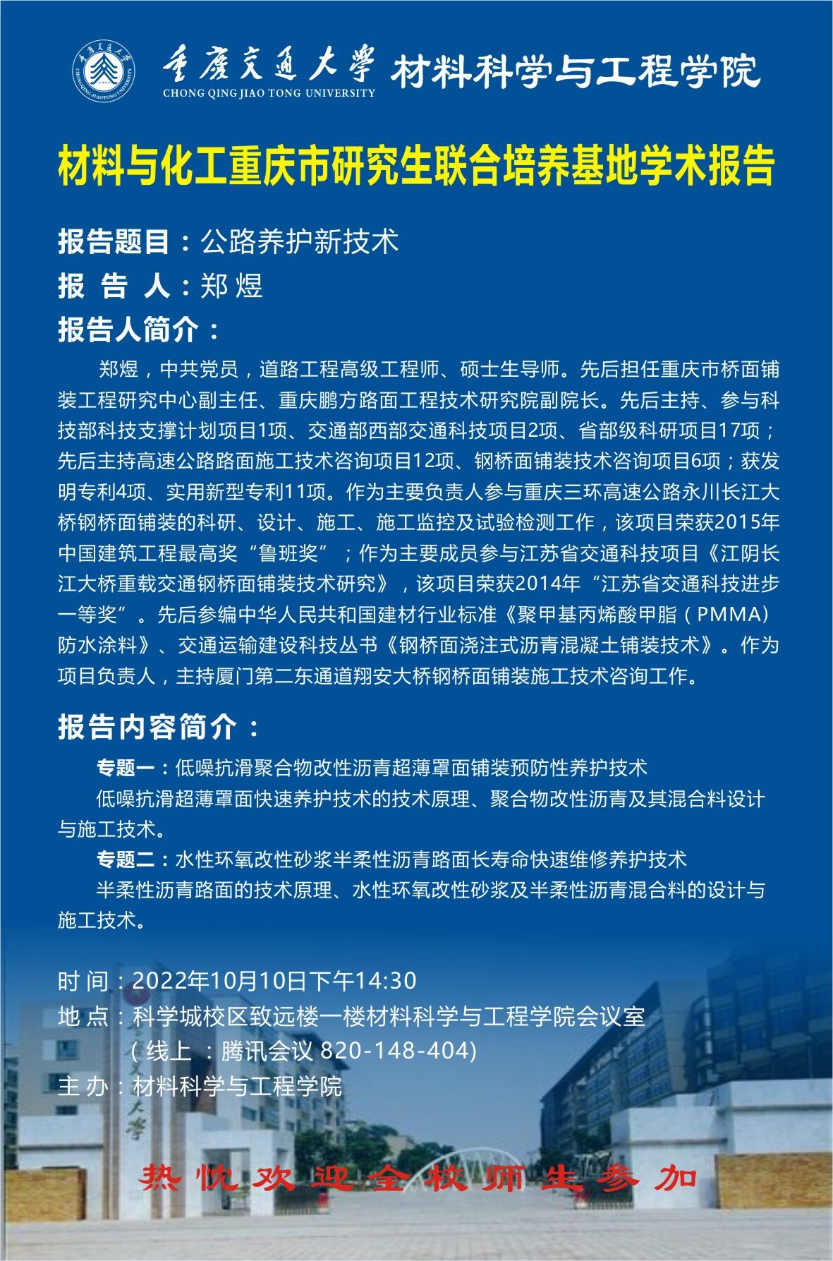 重庆市联合培养基地报告、研究生学术沙龙第一期——公路养护新技术