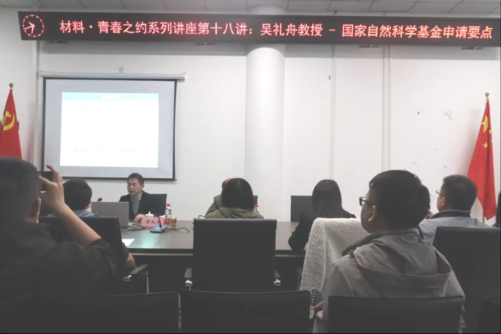 为全力做好国家自然科学基金项目申报工作,进一步提升申报质量,我院于10月24日上午举行了材料·青春之约系列讲座第十八讲,邀请吴礼舟教授讲解国家自然科学基金申请要点。会议在科学城校区我院会议室进行,由我院院长王俊杰主持,学院教师骨干和青年教师出席了会议。