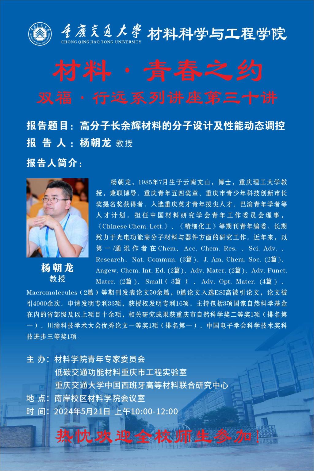 材料·青春之约系列讲座:高分子长余辉材料的分子设计及性能动态调控