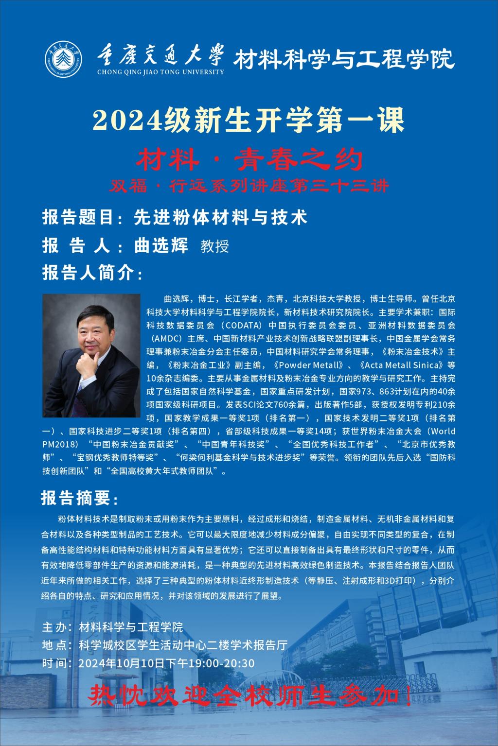 我院2024级新生开学 第一课暨材料·青春之约系列讲座:先进粉体材料与技术