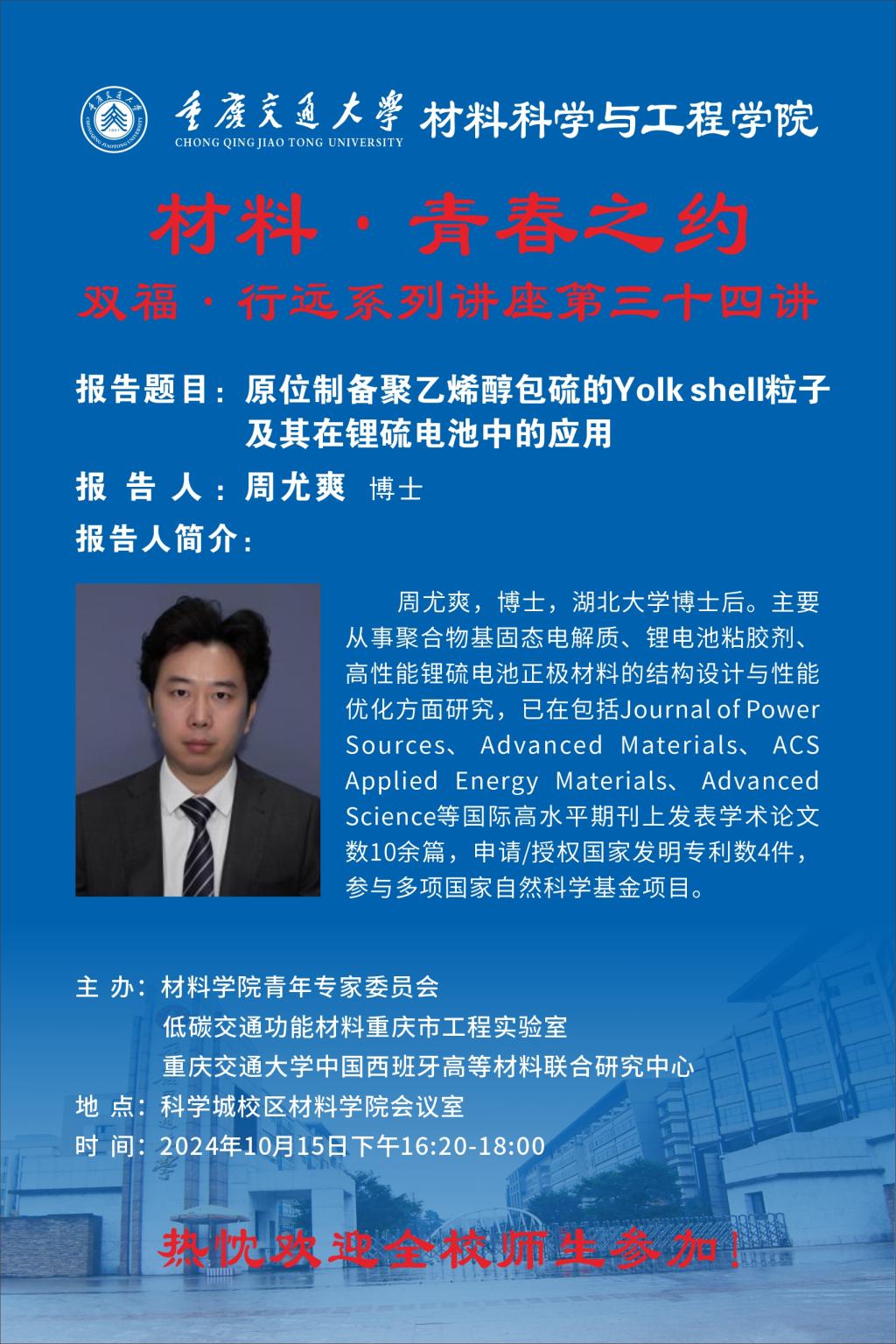 材料·青春之约系列讲座:原位制备聚乙烯醇包硫的Yolk shell粒子及其在锂硫电池中的应用