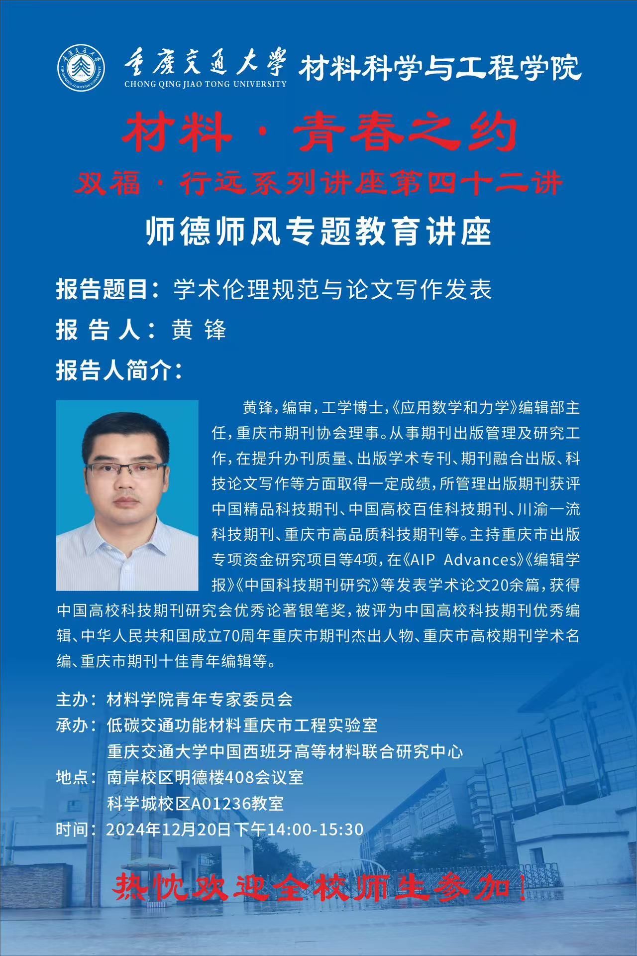 我院师德师风专题教育暨材料·青春之约系列讲座:学术伦理规范与论文写作发表