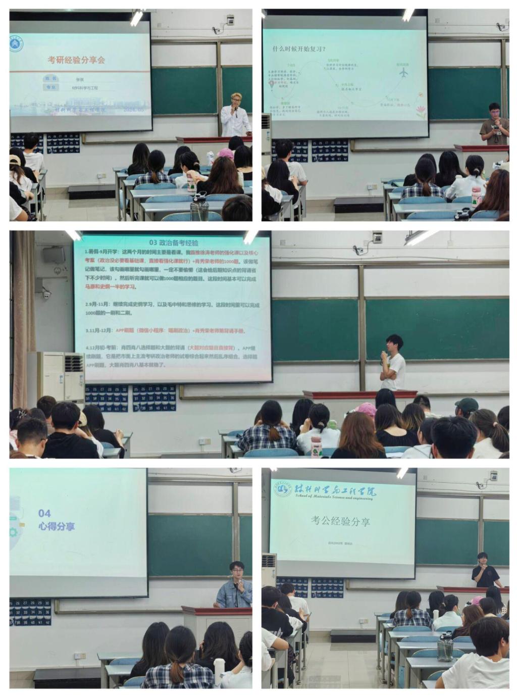 为进一步加强学院就业指导工作,帮助学生了解就业形势,提高学生自身综合素质与就业竞争力,5月9日,新葡萄8883官网AMG在科学城校区分三场A举办“材”子扬帆,“职”在必得2024年毕业生就业经验分享会,本次分享会邀请我院2020级的9名毕业生为本科生分享宝贵的考研经验和就业指导,我院党委副书记黄丽君主持,2021级全体本科生参加。