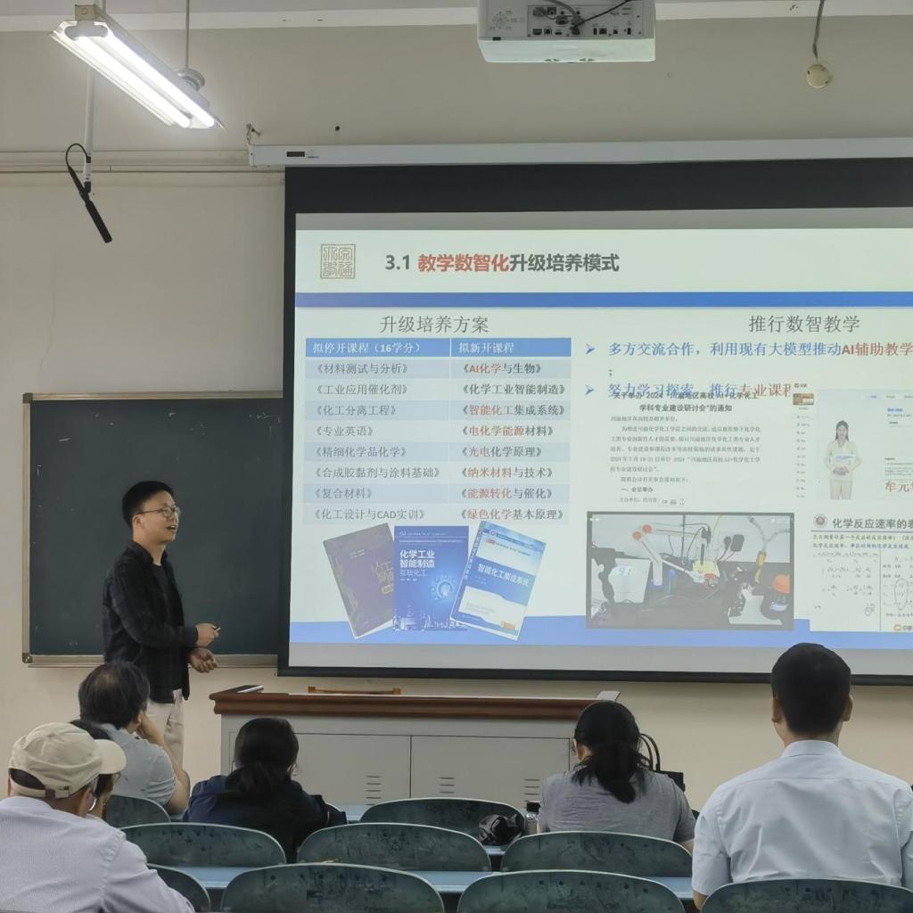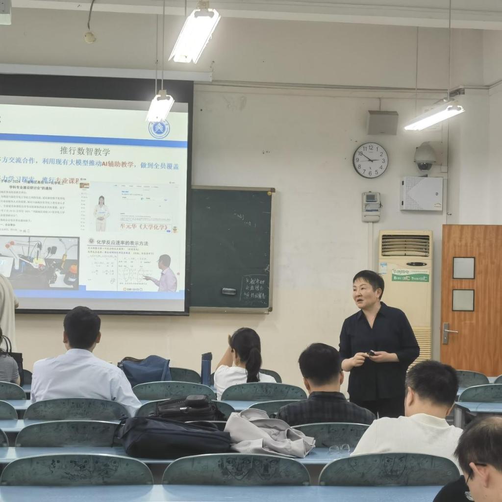 随后,邹锐副主任聚焦课程替换及应用化学转型方向,应用化学专业应围绕未来交通科技发展,积极推动教师科研向 “AI + 化学” 方向转型与延伸。同时,依托交通新能源材料与装备等平台开展有组织的科研活动,大力发展新能源材料智能化研究。在教学模式上,深化科教融合,充分利用 AI 工具,高质量推进场景项目式教育教学,全面升级人才培养模式,使学生在实践中掌握前沿知识与技能,提升综合竞争力。
