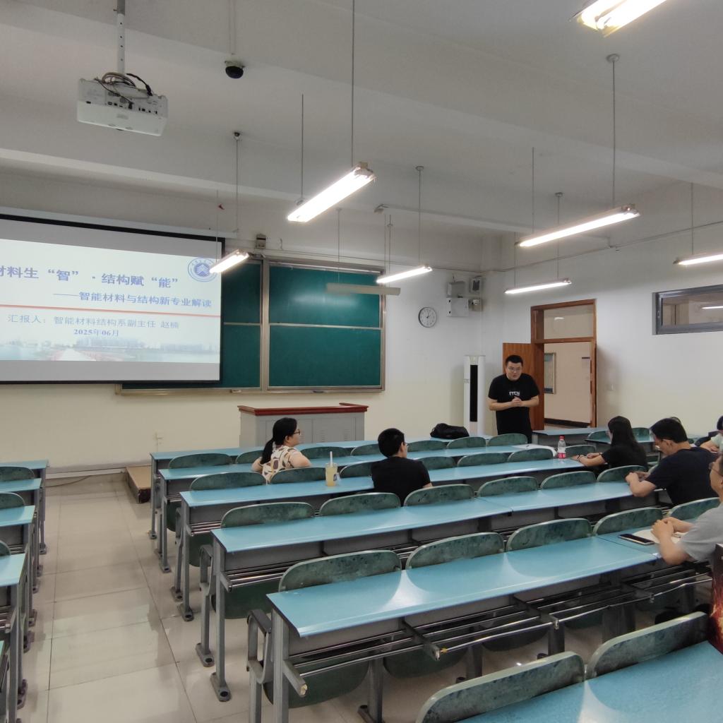 会议首先围绕智能材料工程系智能材料与结构专业进行了专业解读。赵楠副主任详细介绍了目前智能材料与结构专业包含的3项基本内容,即“专业发展历史”“人才培养特色”以及“本科生毕业去向”,与会教师就相关问题进行了深入交流。
